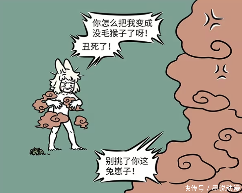 那么小玉会开心吗?结果正好相反。小玉觉得自己变成了无毛猴子,看起来很丑。如果以兔子的眼光来看,或许它们看人类就是如此。可是如果用人类的眼光来看,小玉那是相当可爱。西王母没想到金赢中心,帮助小玉变为人形,还要被小玉吐槽。